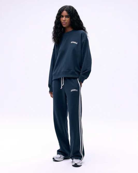 ADANOLA Varsity Loose Fit Sweatpants are your go-to for both lounging and running errands. Made with organic cotton, they feature a flexible drawstring and a waistband fo all day comfort. A relaxed loose silhouette and an embroidered logo on the leg. A comfortable choice, you’ll find your self reaching for them time and time again.